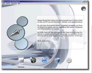 Erstellung einer interaktiven Portfolio CD inklusive Label und Booklet zur Eigenwerbung.